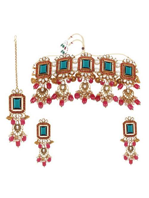 - » matushri art indian traditional necklace with earrings and maang tikka