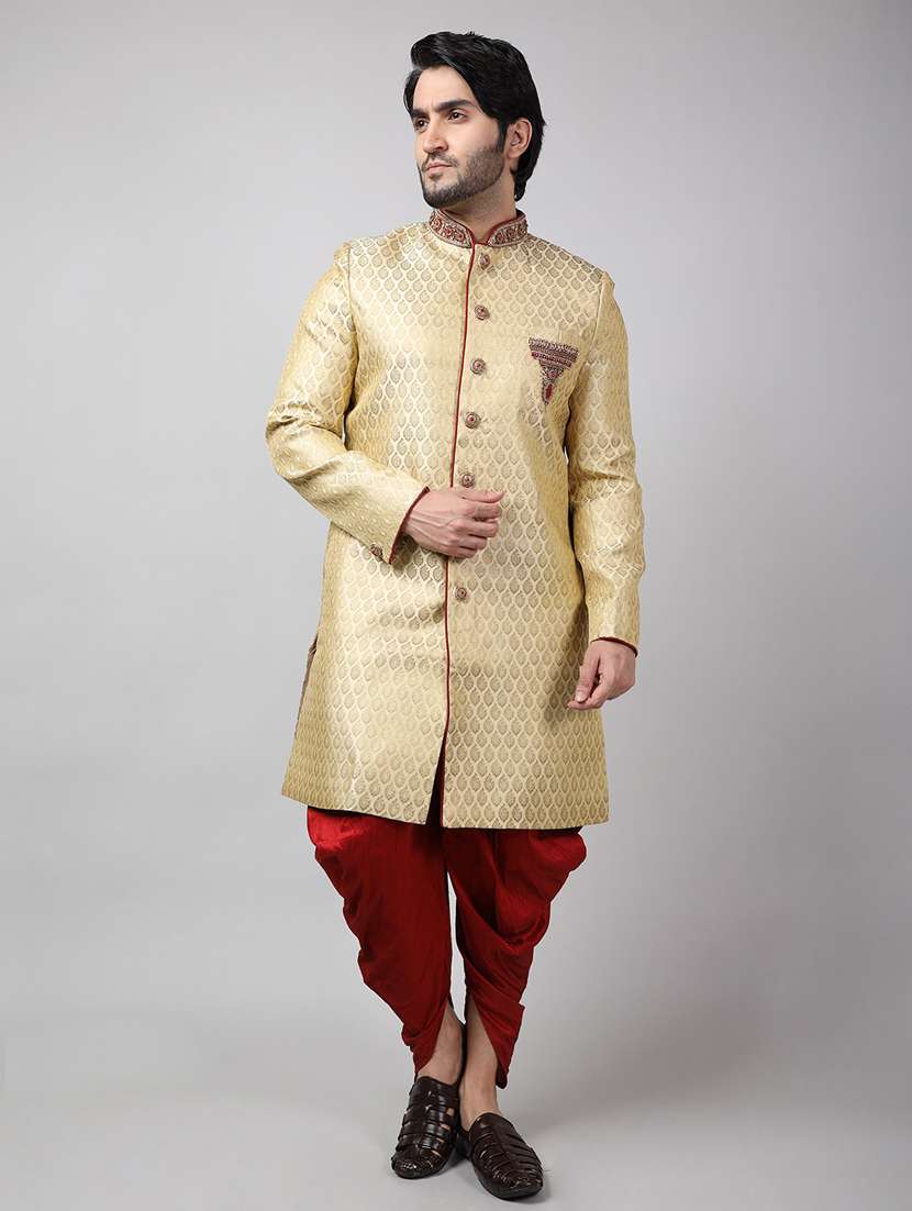 - » golden silk brocade sherwani ethnic wear set