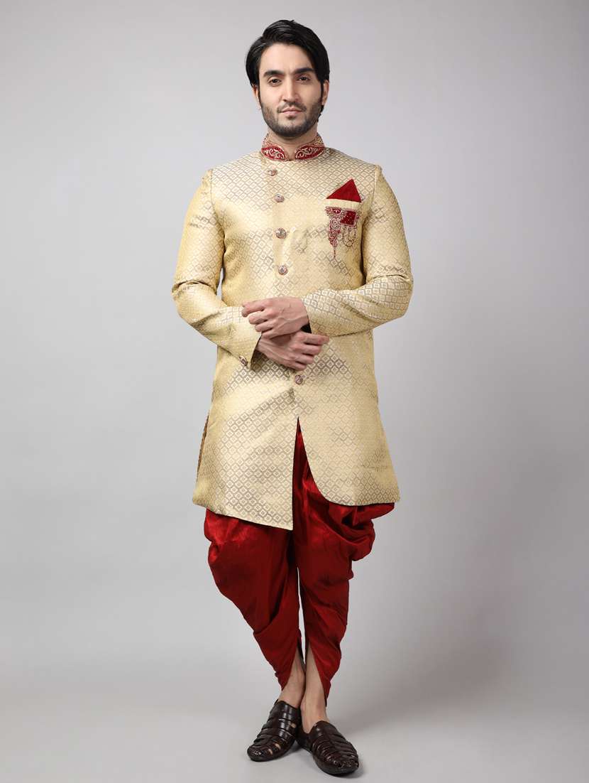 - » golden silk brocade sherwani ethnic wear set