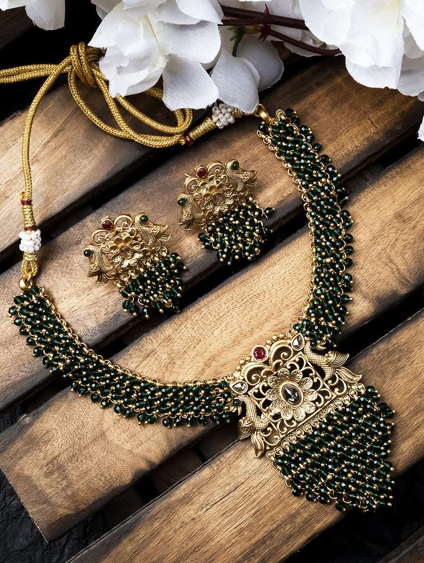 - Lay your hands on this exquisite jewellery set from StileAdda in green colours.