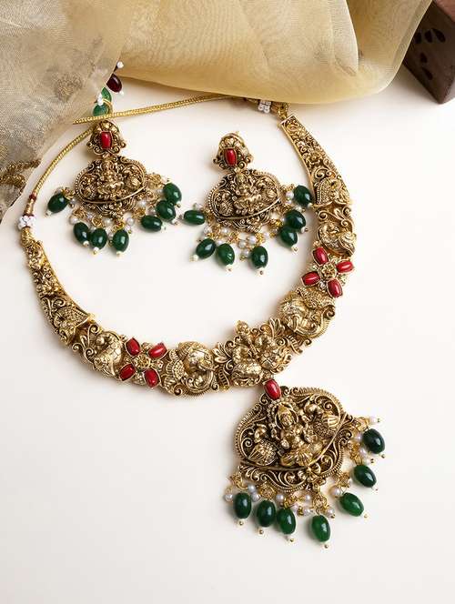 Graceful gold plated necklace set designed to enhance festive and ethnic looks with timeless allure.