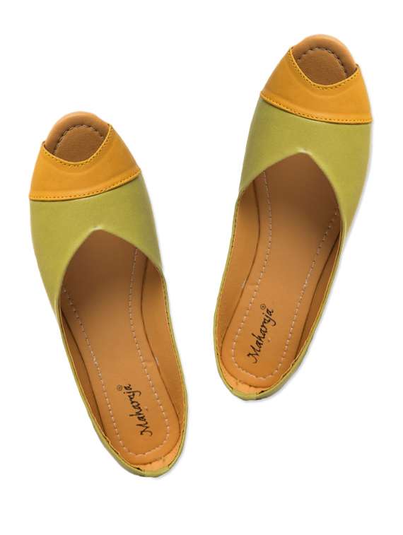 green and yellow peep toe flats