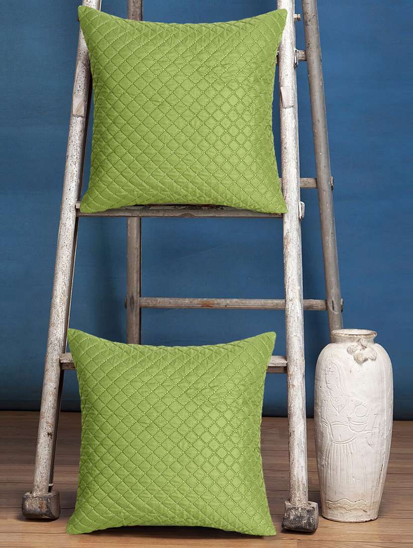 mezposh rasta parrot green polyester checked quilted cushion cover (16"x16") (set of 2)