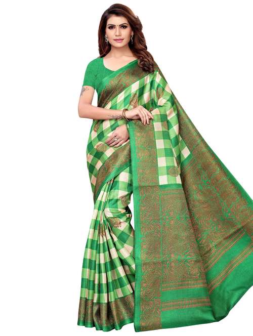 checkered printed saree with blouse - 16445681 - Very Small Image - 1