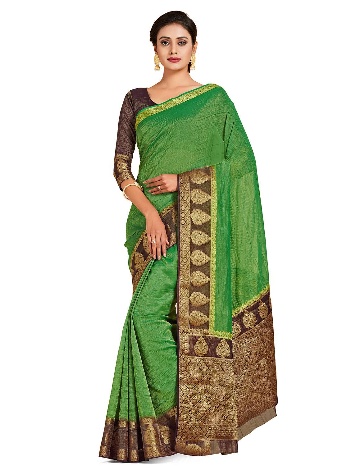 - » women's self design green colored saree with blouse