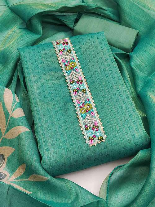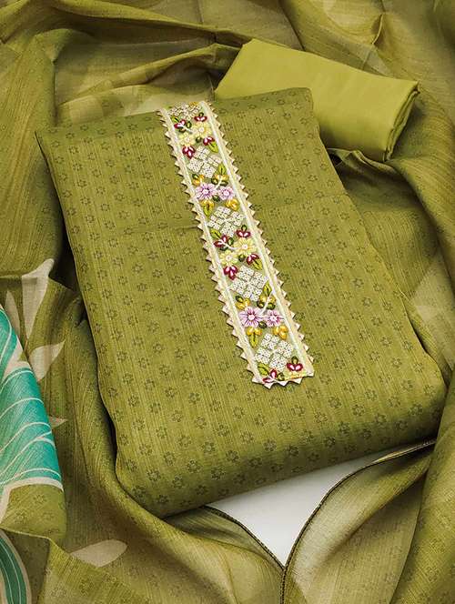 • Look ultra gorgeous in unstitched suits from Peachmode and grab these beautiful suits in green colour.