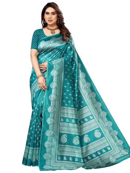 block print art silk saree