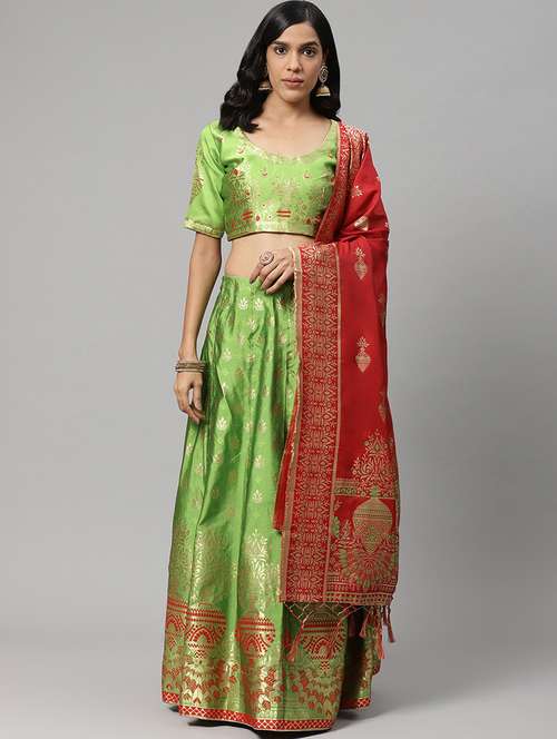 - » green art silk flared lehenga