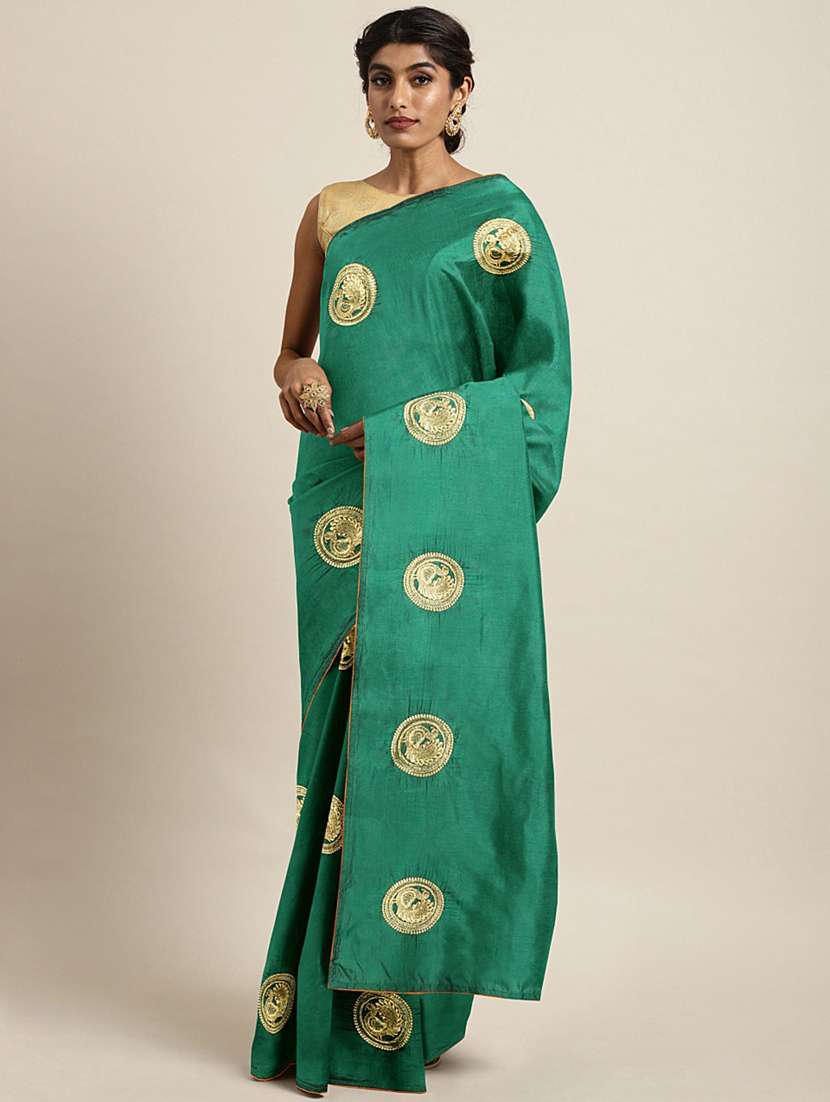 green art silk embroidered saree with blouse