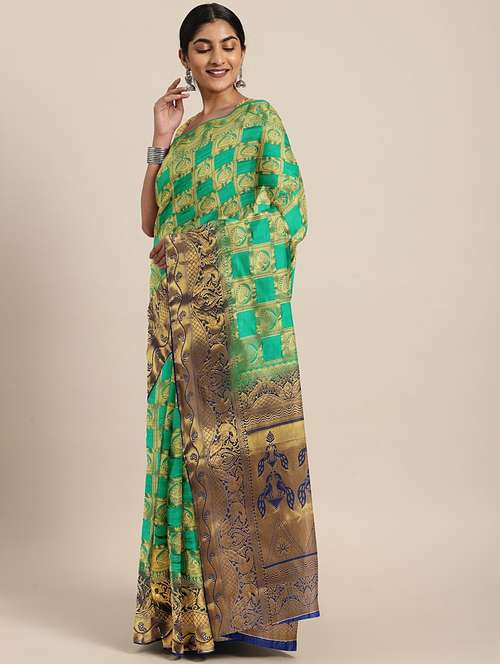 - » women green self design banarasi saree with blouse