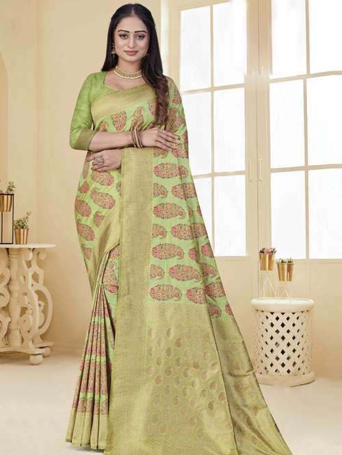 - » self design printed saree with blouse