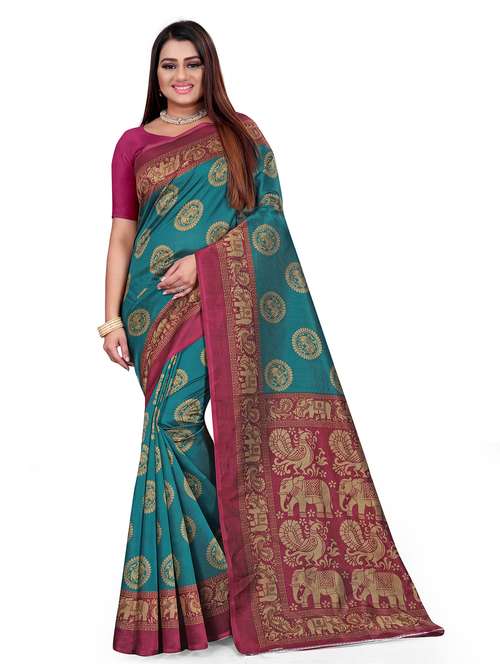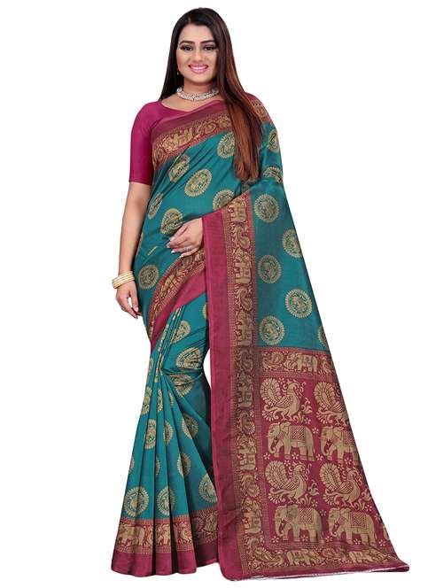 - » women's printed green colored saree