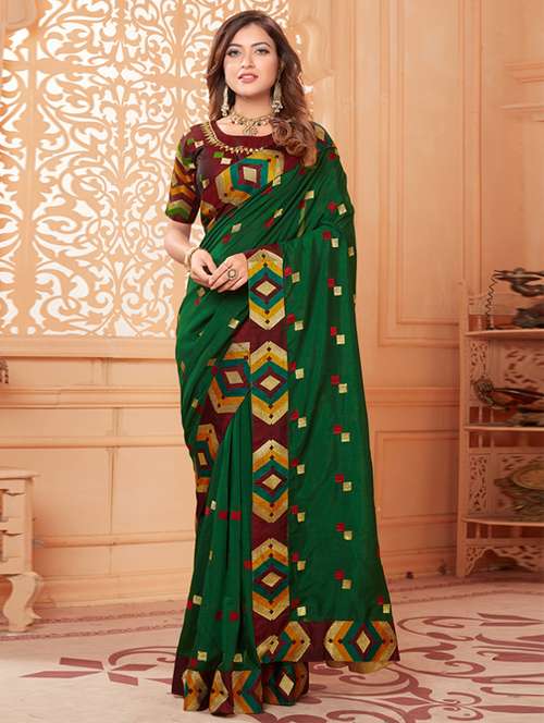 - » bottle green bordered saree
