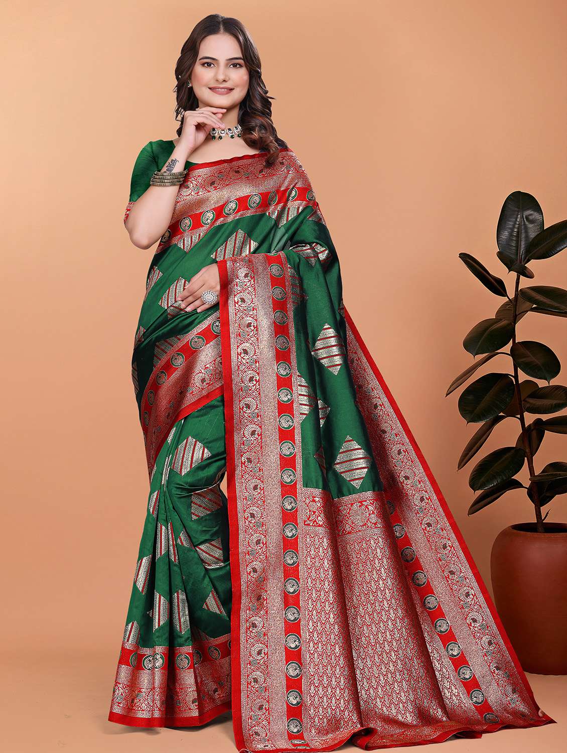 women self design banarasi saree with blouse