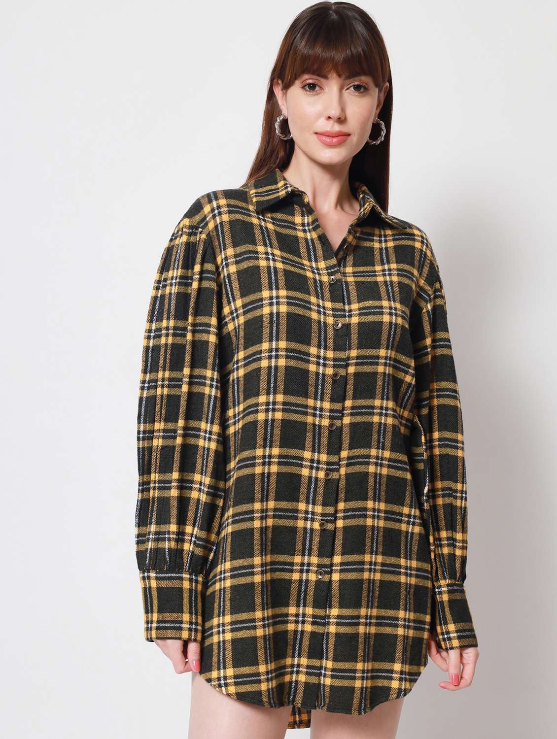 shirt collar checkered mini shirt dress