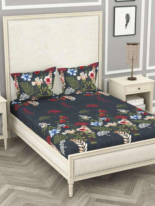 - » bianca 130gsm super-peached king-size double bedsheet with 2 pillow cover - deep colors & soft-finish fabric -3pc set-geo tokyo
