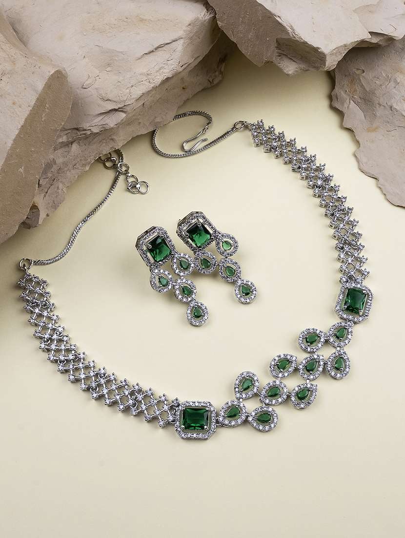 - Lay your hands on this exquisite jewellery set from StileAdda in green colours.