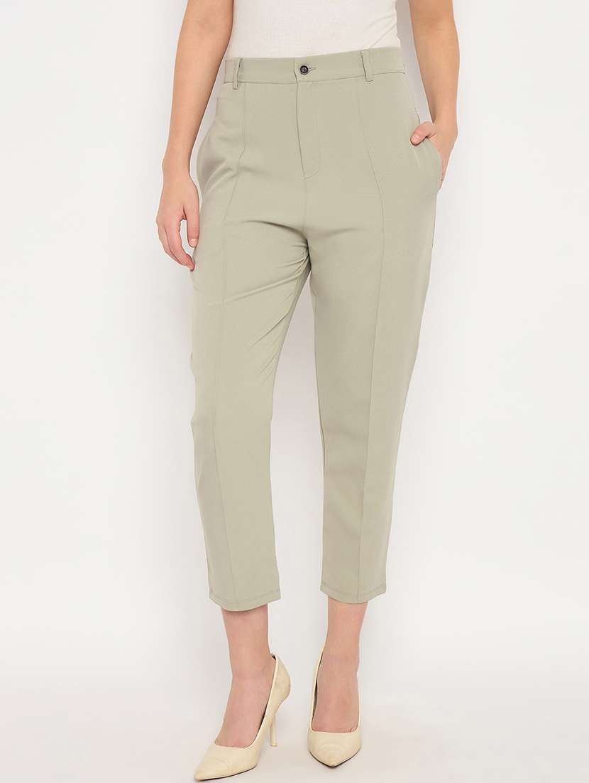 - » women solid high rise calf length cigarette pants