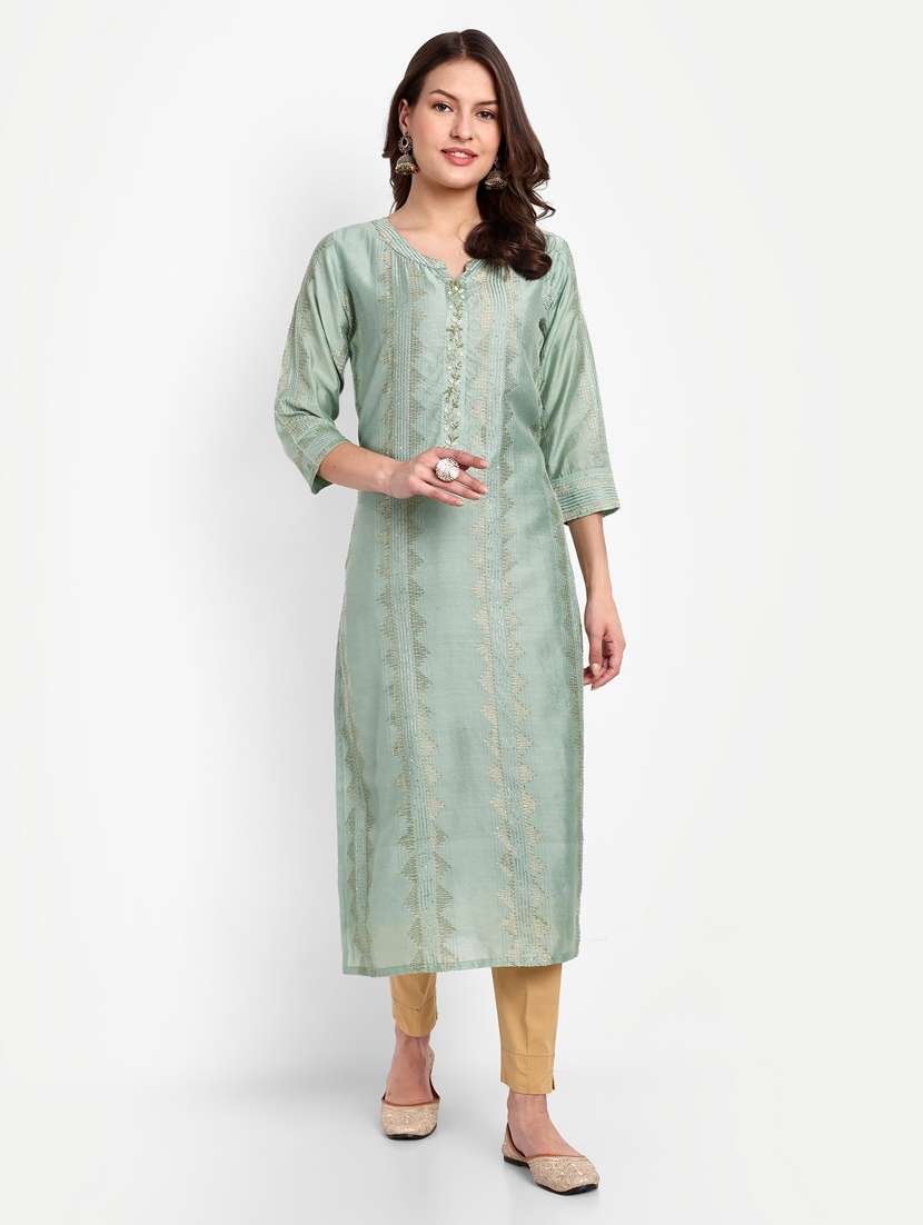 - » green three quarter sleeve straight kurta