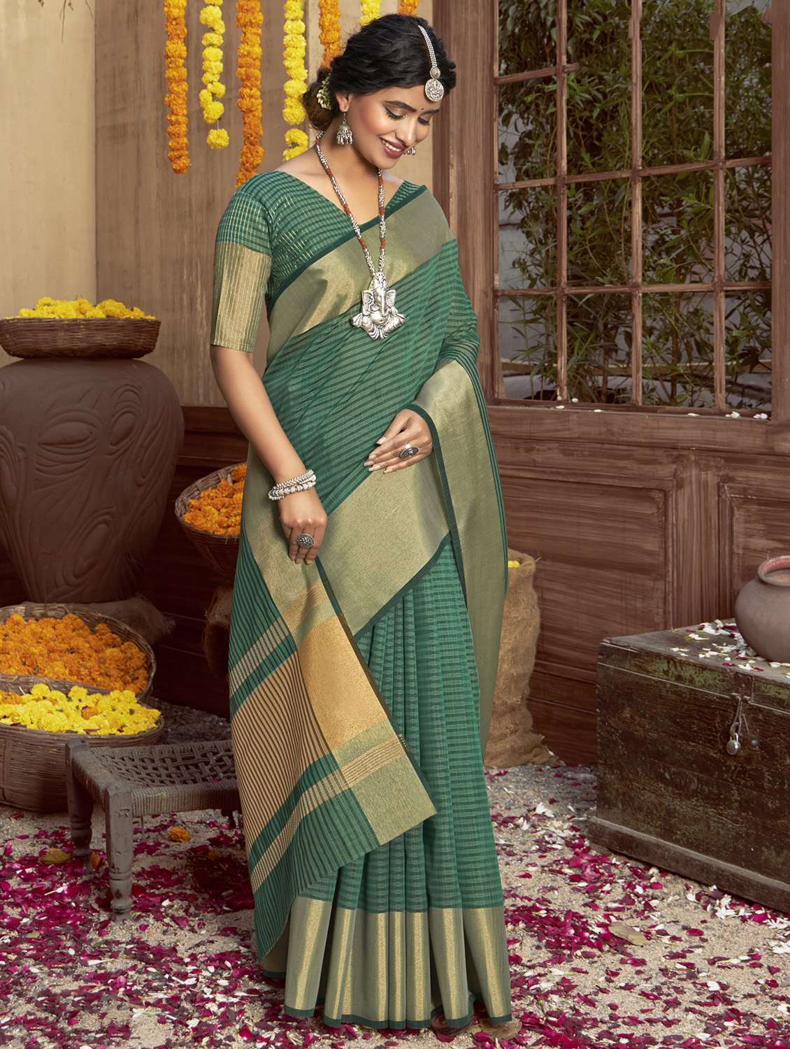golden zari work woven saree with blouse