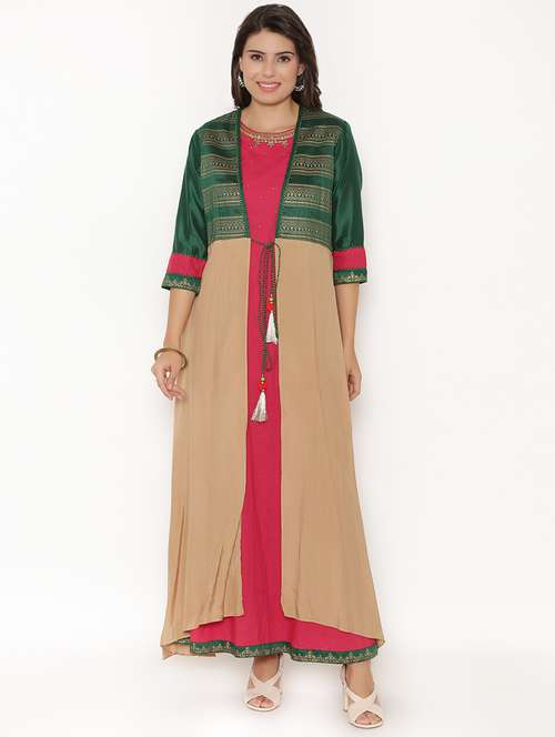 - » green chanderi layered kurta