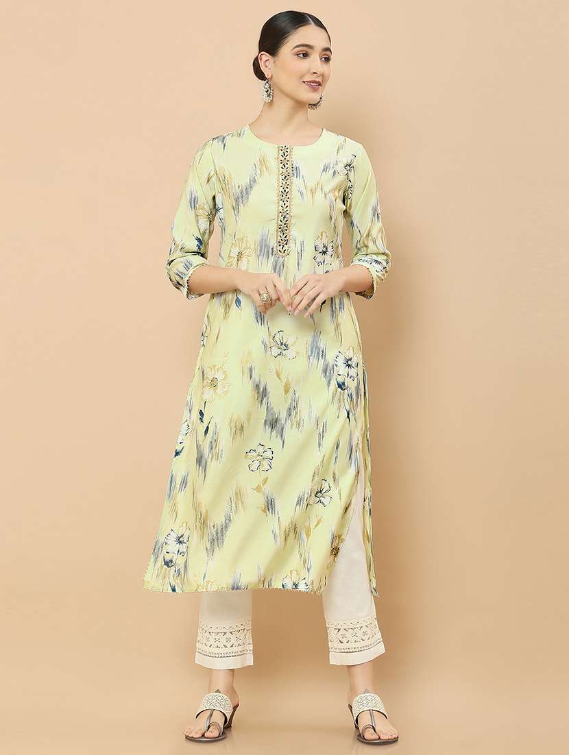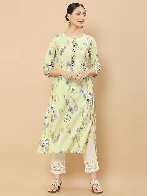 - » yellow coloured printed a-line kurta