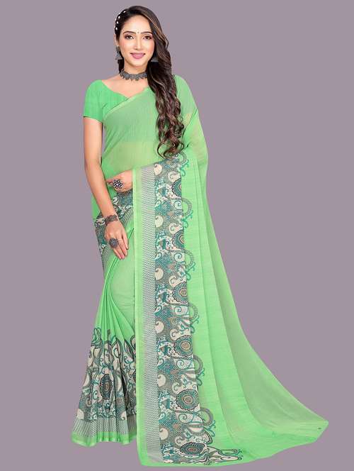women green floral printed chiffon saree - 21401065 - Very Small Image - 1