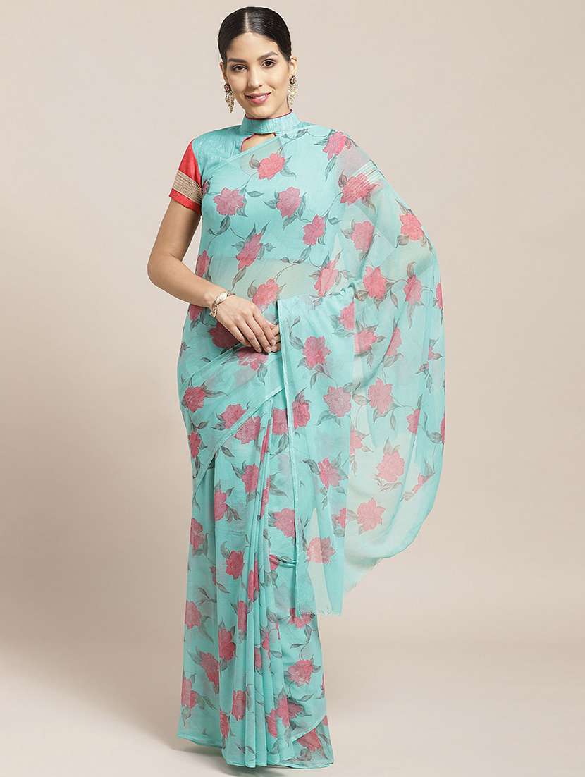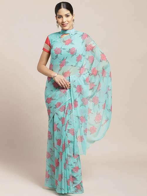 floral printed saree with blouse - 17258518 - Very Small Image - 1