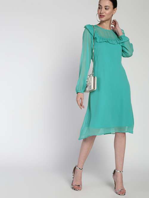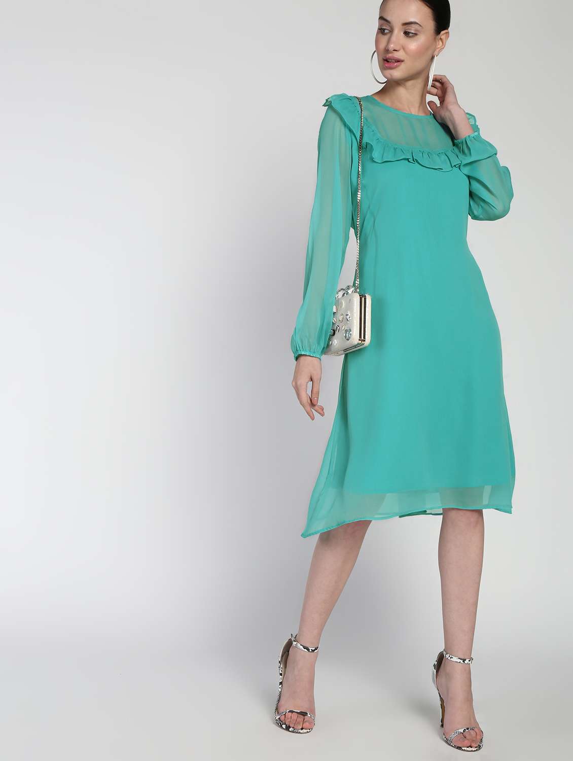 sheer panel frill detail a-line dress