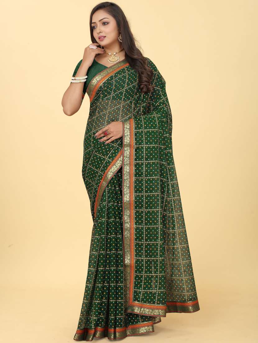 - » women's bandhani green colored saree with blouse