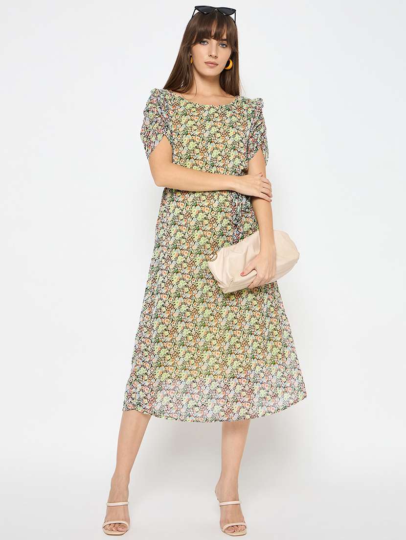women green floral printed a-line dress - 21531960 - Very Small Image - 1