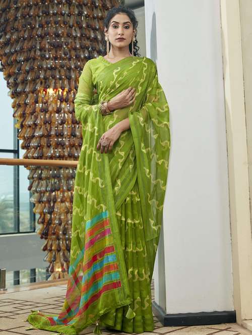 green chiffon printed saree with blouse - 19496054 - Very Small Image - 1