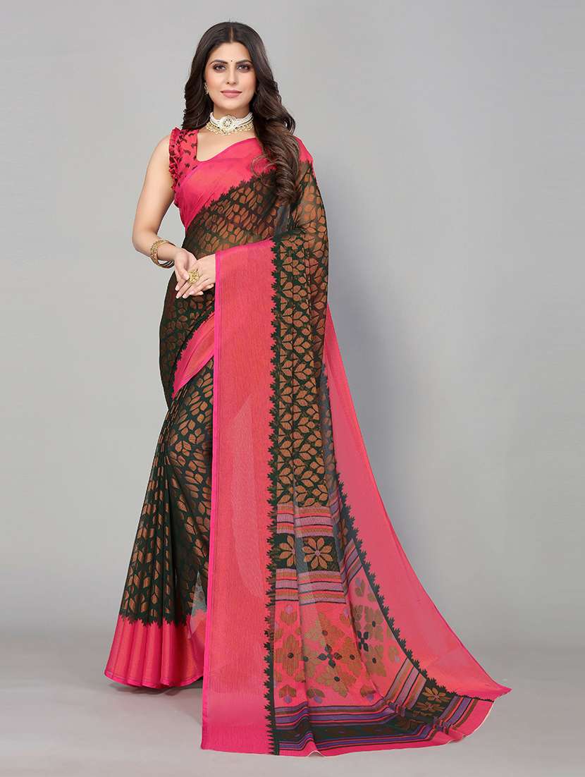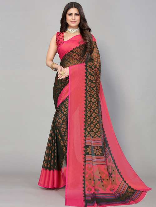 chiffon printed saree with blouse