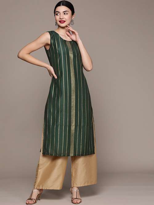 women green round neck straight kurta