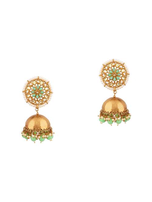 traditional kundan jhumka earrings  - 17897708 - Very Small Image - 1