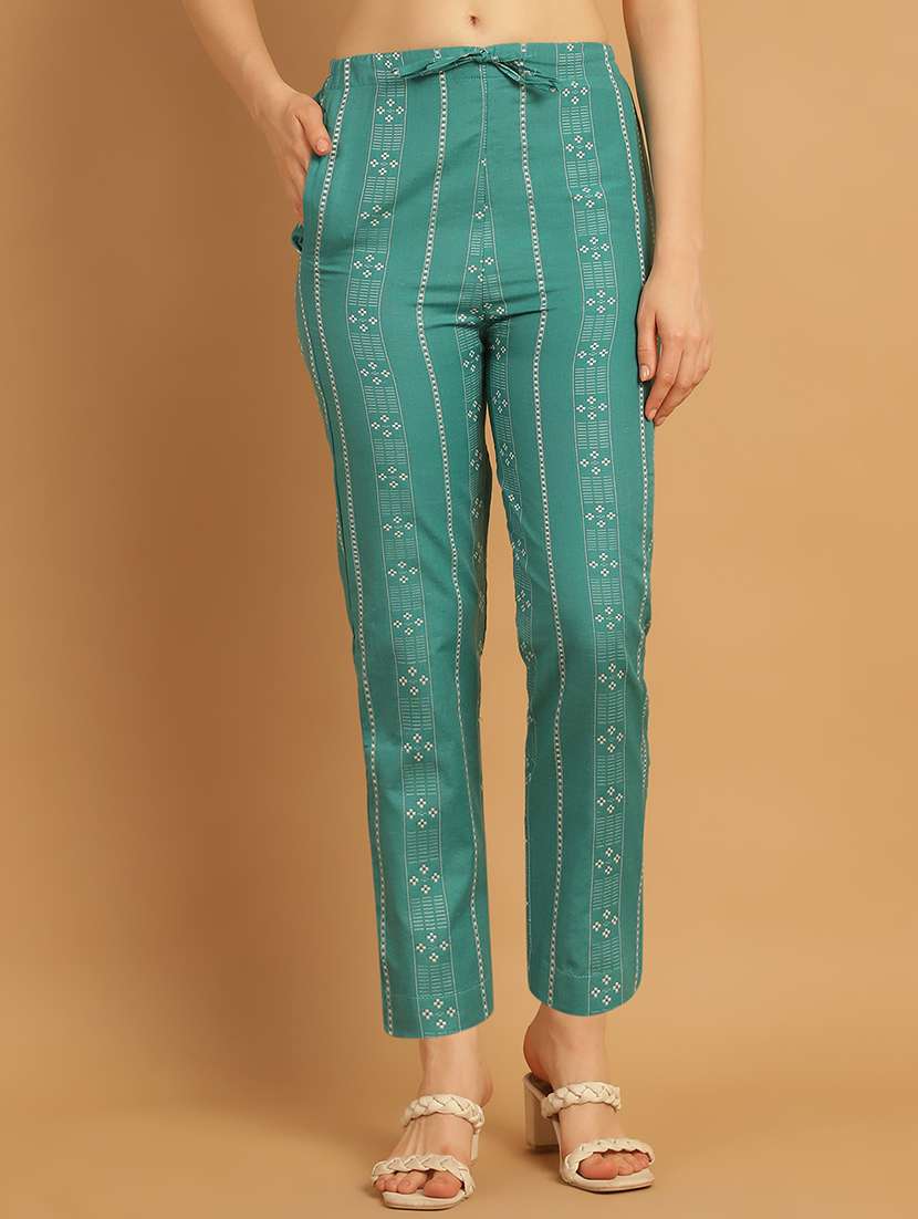 - » sea green printed cotton straight pant