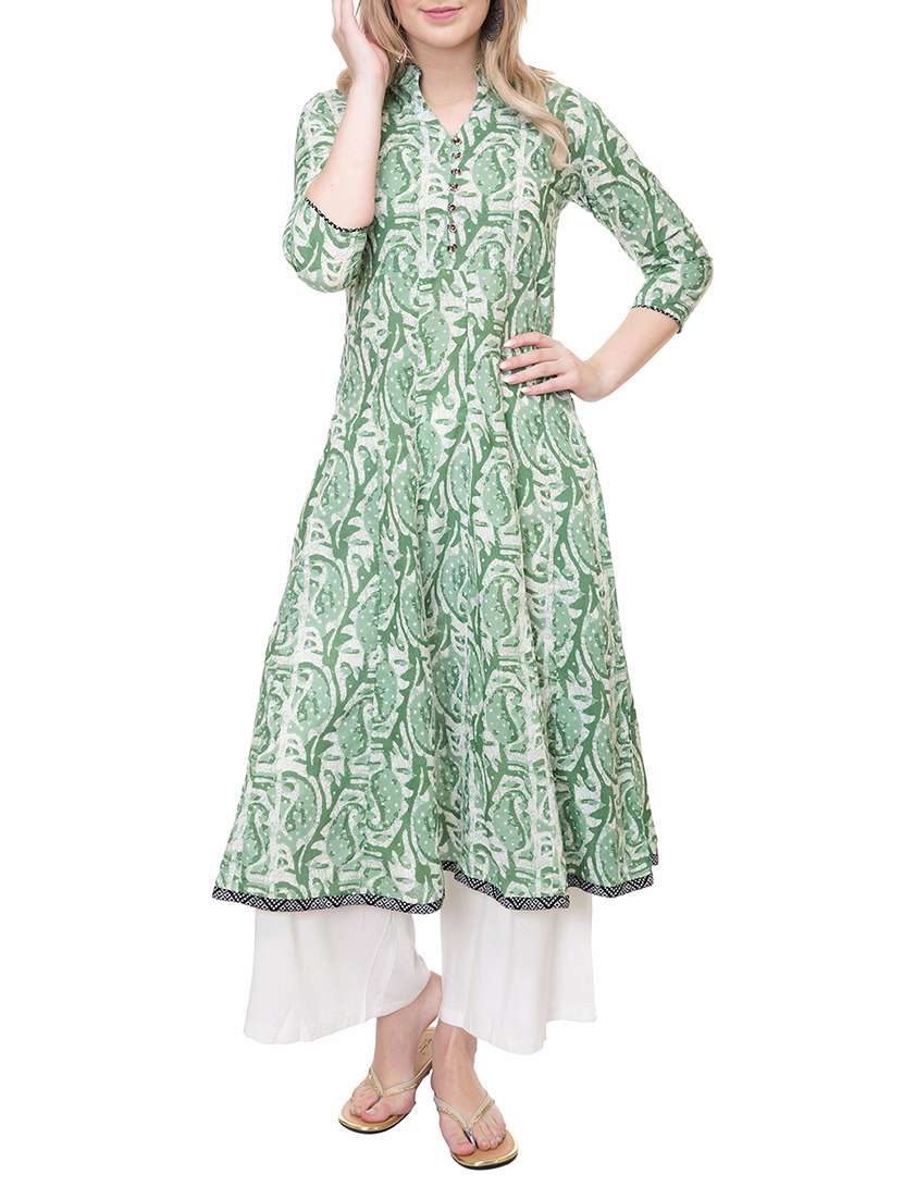 green cotton flared kurta - 14889577 - Very Small Image - 1