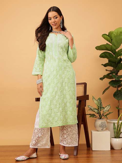 women solid with work long sleeve chikankari straight kurta - 22186318 -  Standard Image - 1 women solid with work long sleeve chikankari straight kurta - 22186318 -  Zoom Image - 1