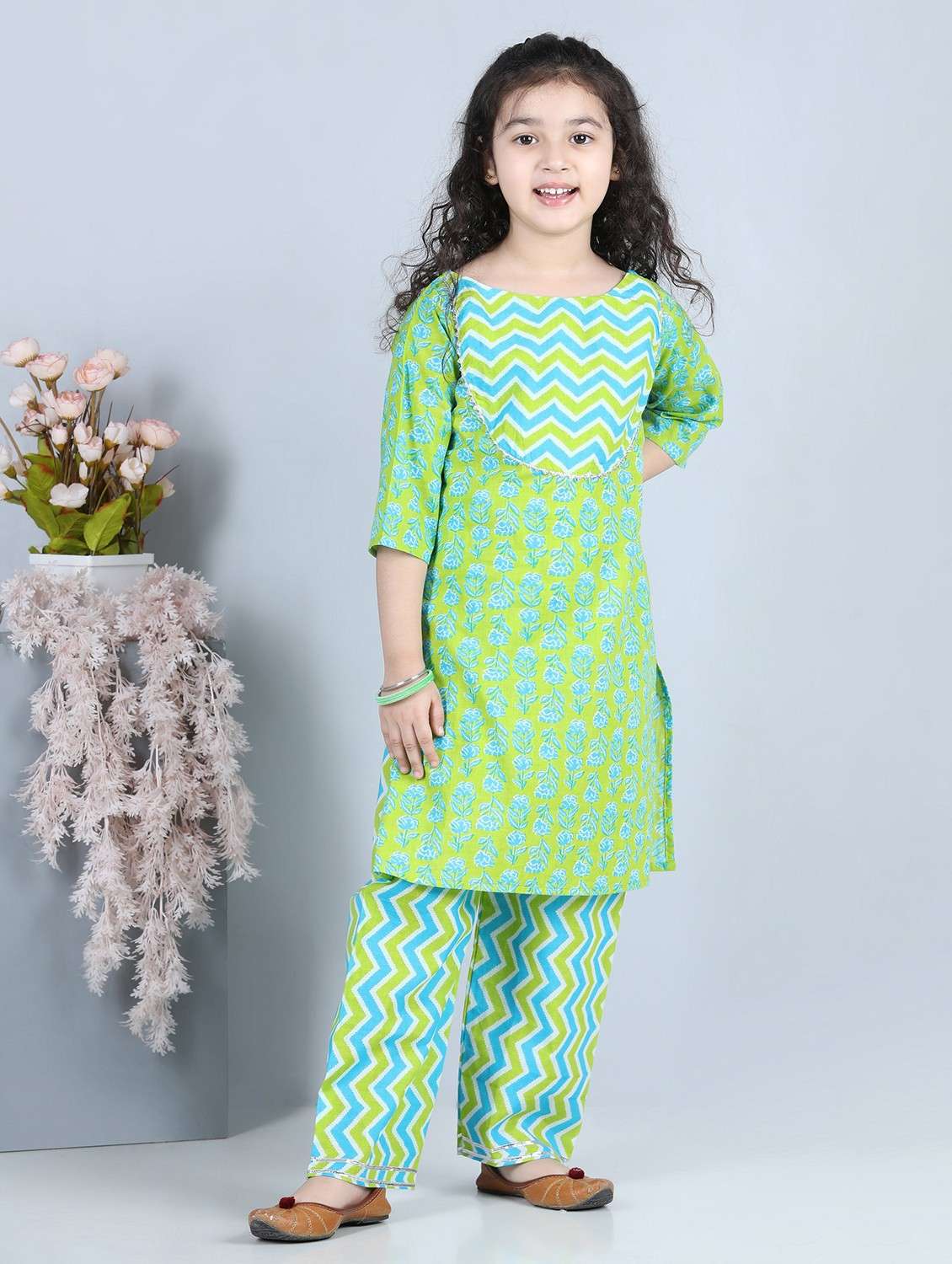 green printed kurta palazzo set