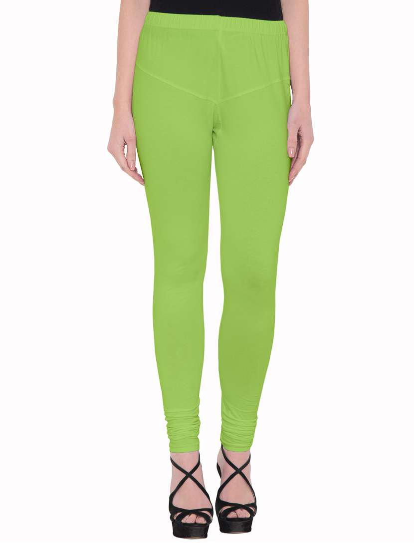 American-Em Women Light Green Solid Cotton Slim Fit Churidar Legging
