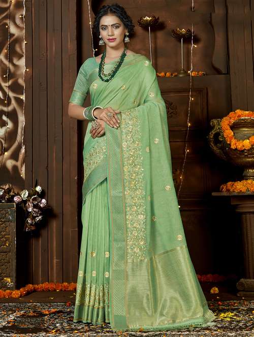 golden zari work embroidered saree with blouse - 18442156 - Very Small Image - 1