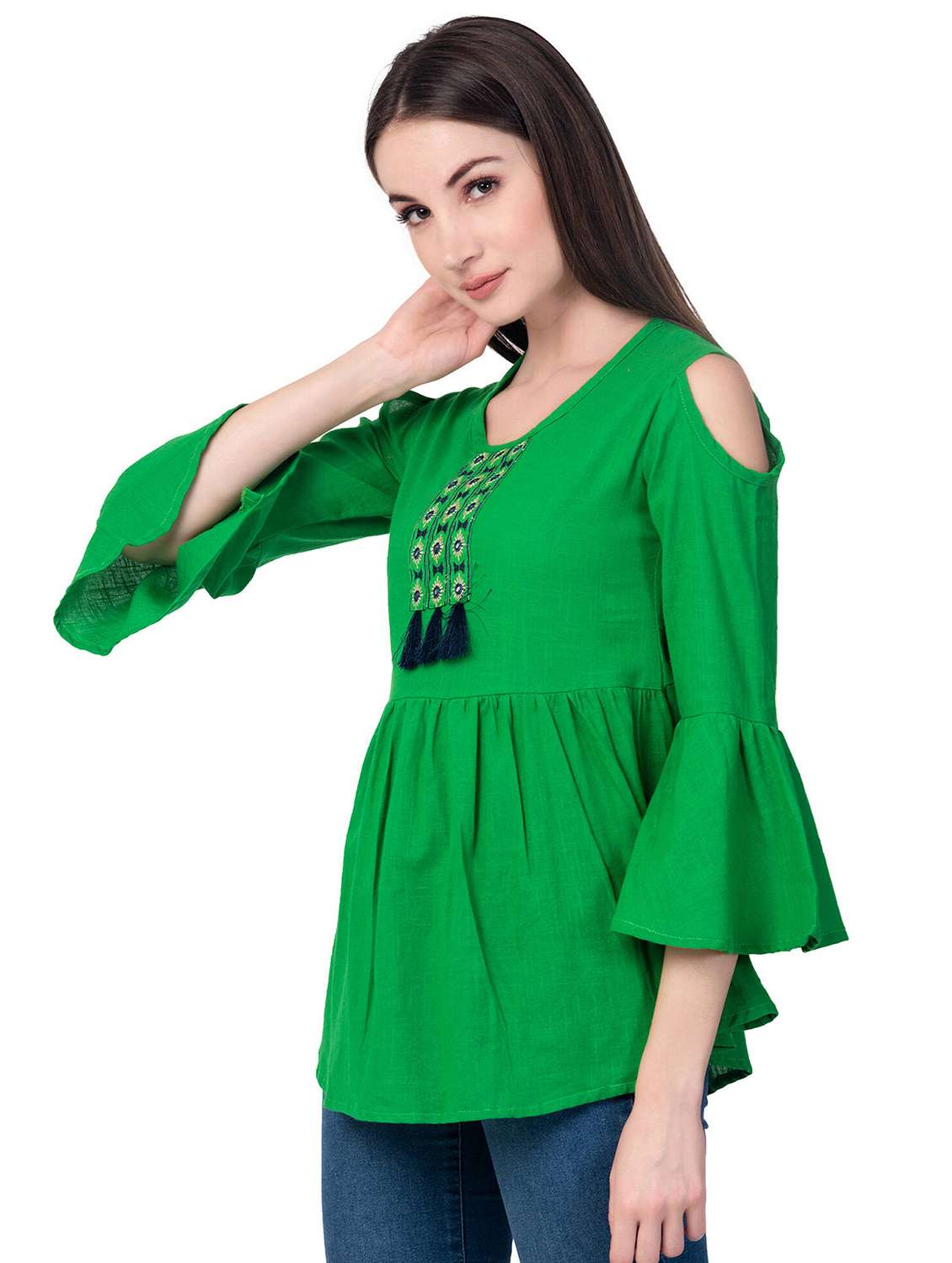 embroidered detail cold shoulder top