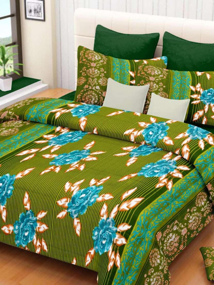 - » valtellina floral green cotton double bed sheet with 2 pillow cover - tc-250