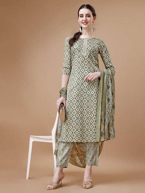 - Find gorgeous sets of ethnic wears in trending designs in green colors suitable for casual wear of occasions.