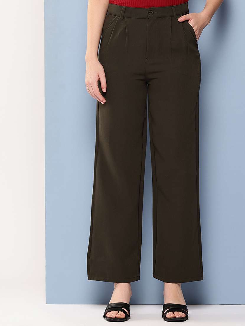 girls solid mid rise straight trouser