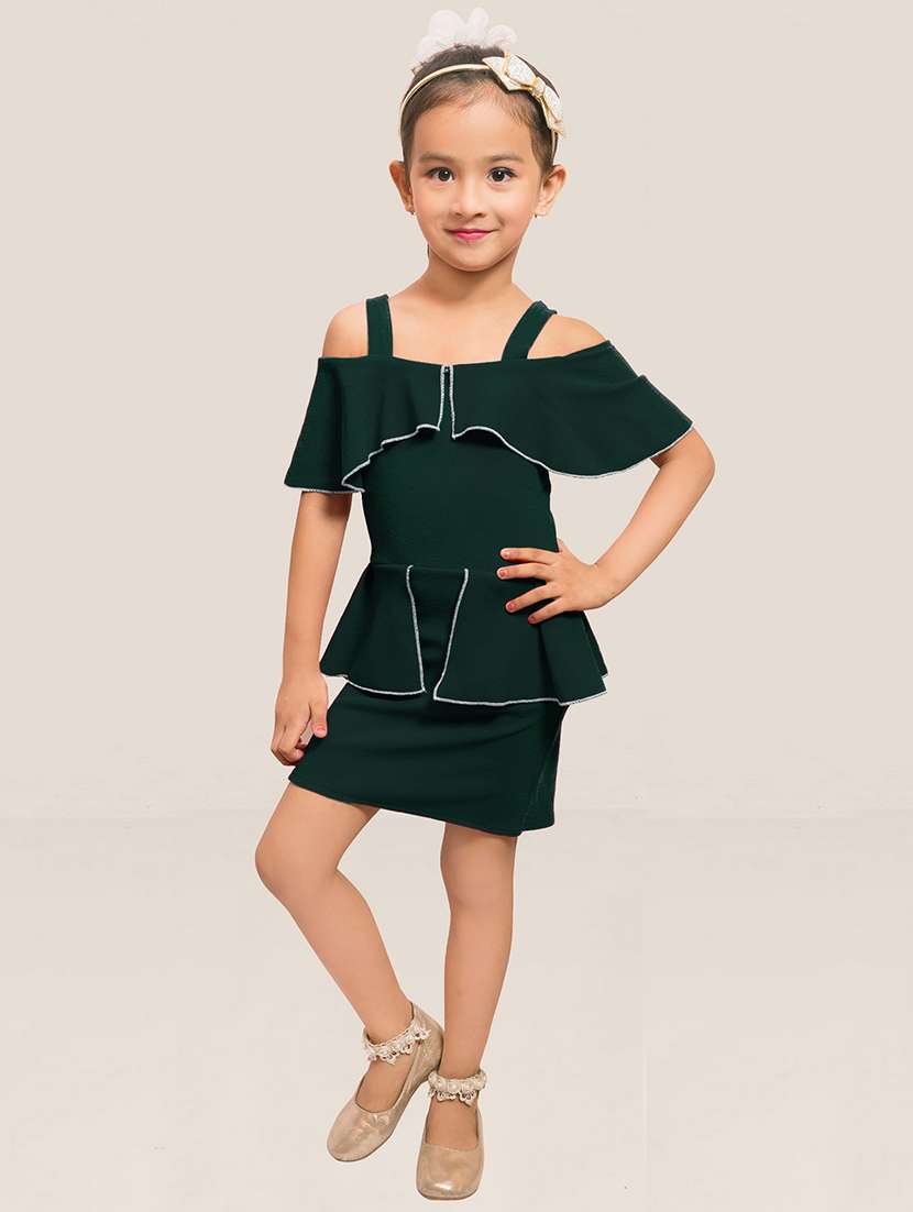 - » girls square neck cold shoulder peplum dress