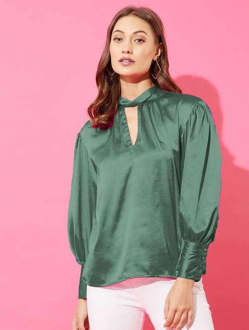 - » women green solid boxy top