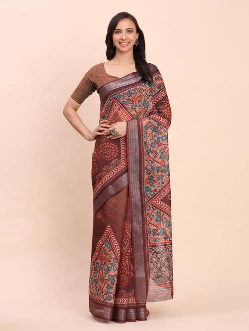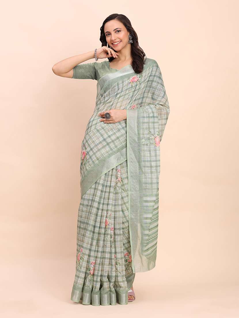 Channel earthy elegance with this striking green Cotton cotton saree featuring a tribal-inspired floral print. Rich tones of mustard, red, and beige bring out the bold design, while the lightweight and breathable fabric makes it ideal for day-long wear. Whether you’re heading to a cultural event, family gathering, or want to make a style statement in daily life — this saree offers a perfect blend of tradition and trend. Tribal Elegance: Unique ethnic floral print that makes a bold impression Cultural Yet Modern: Perfect balance of earthy tones and trendy appeal Soft & Lightweight: Cotton cotton fabric for breathable all-day comfort Art-Inspired Pallu: Traditional patterns and textures reflect artisan beauty Versatile Styling: Great for pujas, workwear, family functions & gifting