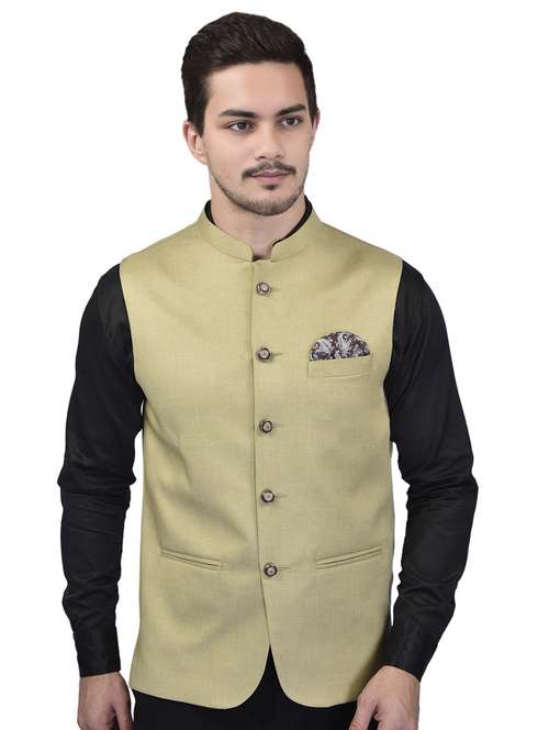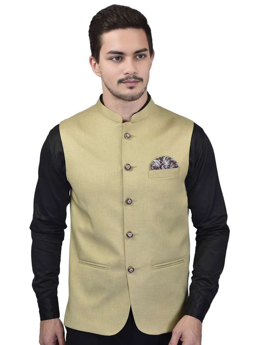 - » men solid mandarin neck sleeveless nehru jacket