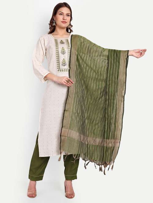 self design kurta pant set with dupatta